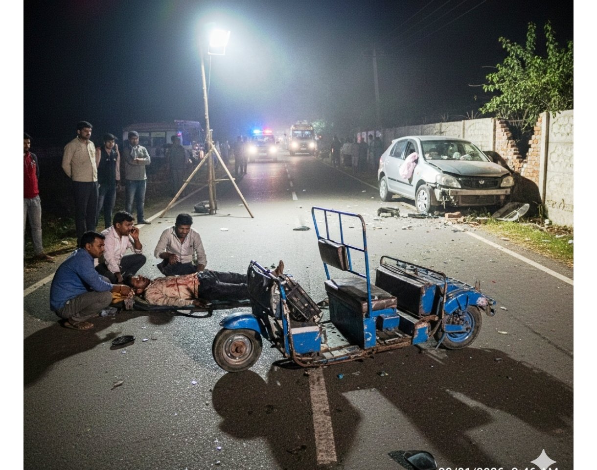 ​जानकारी के अनुसार, इटवा निवासी मुस्तफा पैंतालीस वर्ष, सैद बीस वर्ष और इरफान अठारह वर्ष बुधवार रात ई-रिक्शा से डुमरियागंज की ओर से अपने घर लौट रहे थे। इसी दौरान कमदालालपुर के पास सामने से आ रही एक तेज रफ्तार कार ने उन्हें सीधी टक्कर मार दी। भिड़ंत के बाद कार करीब 100 मीटर दूर जाकर एक दीवार से टकरा गई, जिससे सड़क पर मलबे का ढेर लग गया।