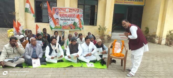 सिद्धार्थनगर (30 जनवरी): कांग्रेस पार्टी द्वारा चलाए जा रहे ‘मनरेगा बचाओ संग्राम’ अभियान के तहत आज जनपद के सभी विकास खंडों में ब्लॉक कांग्रेस कमेटियों द्वारा शांतिपूर्ण धरना प्रदर्शन किया गया। डुमरियागंज, बांसी और अन्य ब्लॉक परिसरों में आयोजित इस धरने के माध्यम से कांग्रेस कार्यकर्ताओं ने केंद्र सरकार के खिलाफ अपना विरोध दर्ज कराया। गांधी जी की पुण्यतिथि पर अर्पित की श्रद्धांजलि